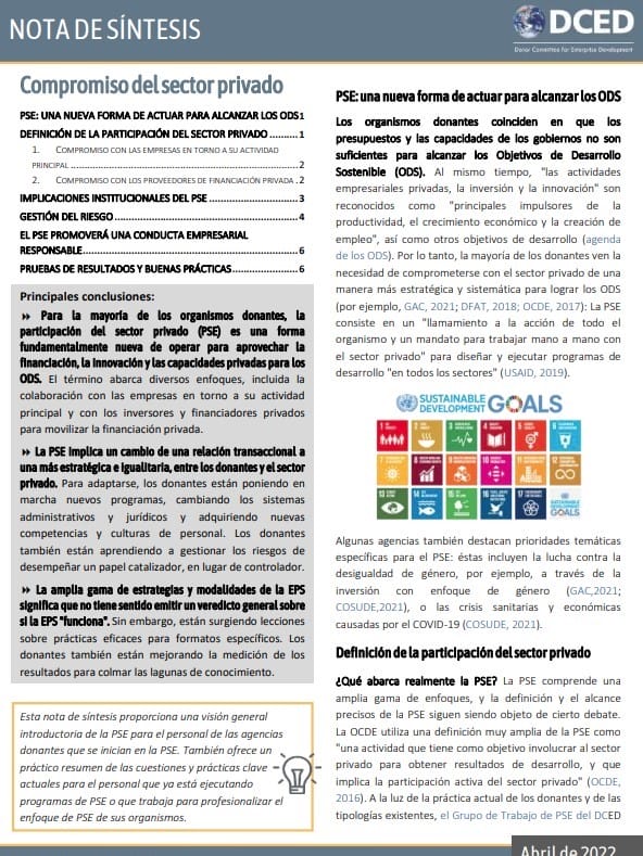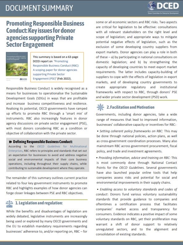 Many donors aspire to have more equal, longer-term and strategic relationships with business in achieving inclusive economic outcomes in developing countries, complementing their traditional focus on bilateral work with governments. Increasingly, donors are also asked to engage with their own domestic companies to deliver mutual benefits for donor and partner country economies