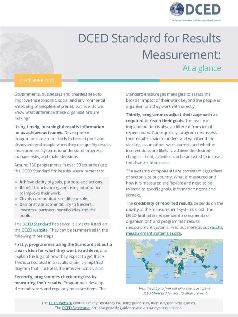 Good results measurement is a priority for all members of the DCED, as it generates the evidence base to assess the effectiveness of private sector development and feedback into learning and adaptive management. The Results Measurement Working Group (RMWG) was therefore formed in 2008 to identify ways in which the DCED can contribute meaningfully to improving practice on the ground, at scale.