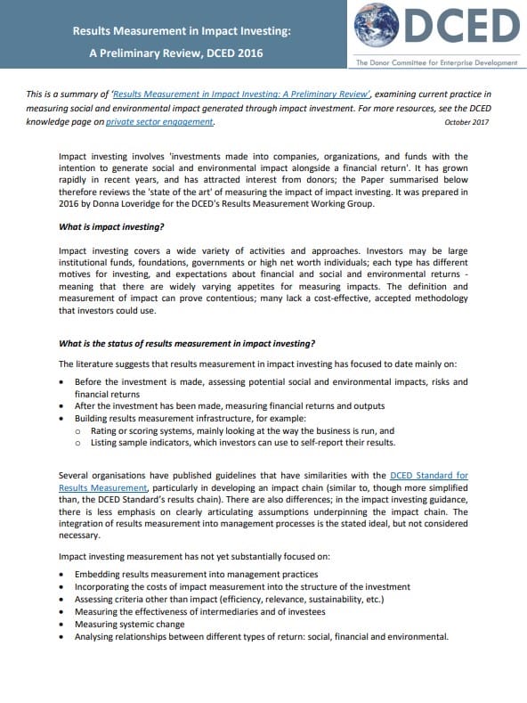 Good results measurement is a priority for all members of the DCED, as it generates the evidence base to assess the effectiveness of private sector development and feedback into learning and adaptive management. The Results Measurement Working Group (RMWG) was therefore formed in 2008 to identify ways in which the DCED can contribute meaningfully to improving practice on the ground, at scale.